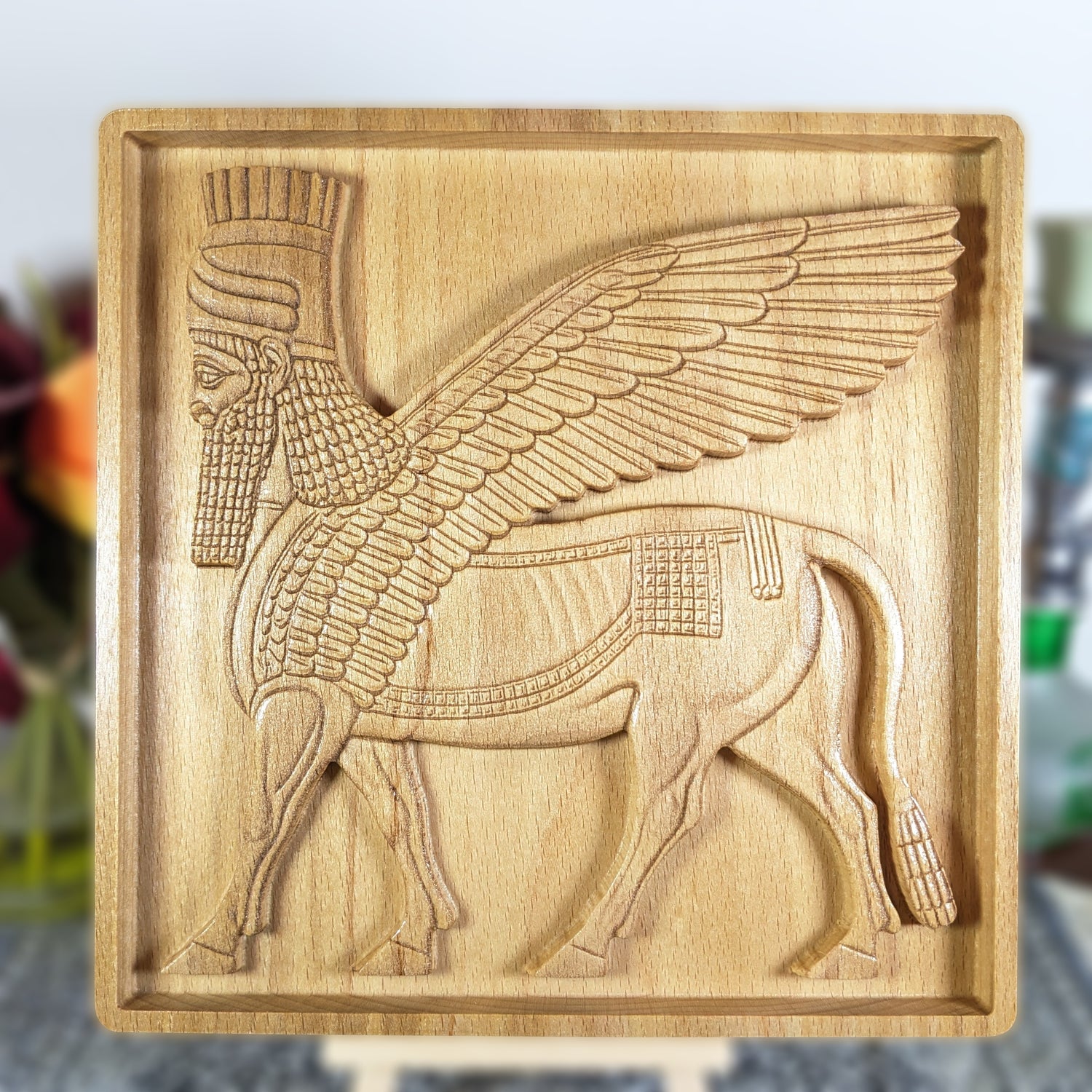 Handmade Ancient Persian Dragon Hunter 3D Wood Carving – Historical Wall Art – Mythical Decor – Gift Made in USA