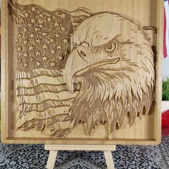 American Eagle Wall Art – 3D Wood Carving – Patriotic Decor – Veteran Gift – Made in USA