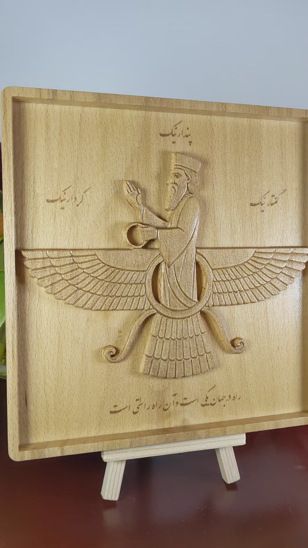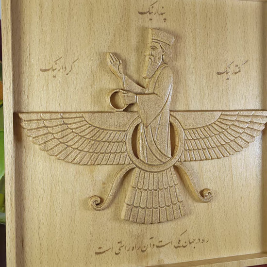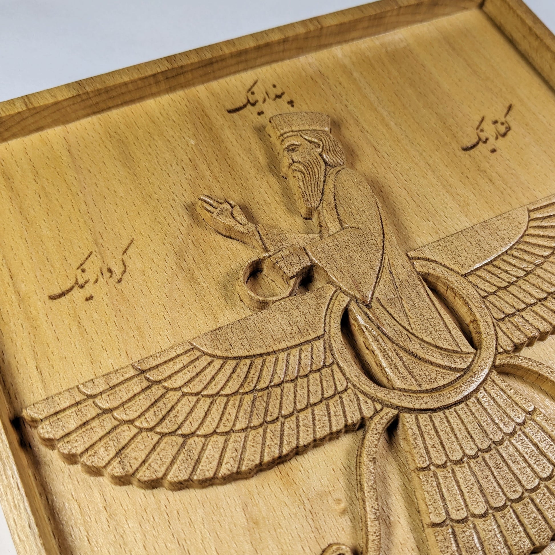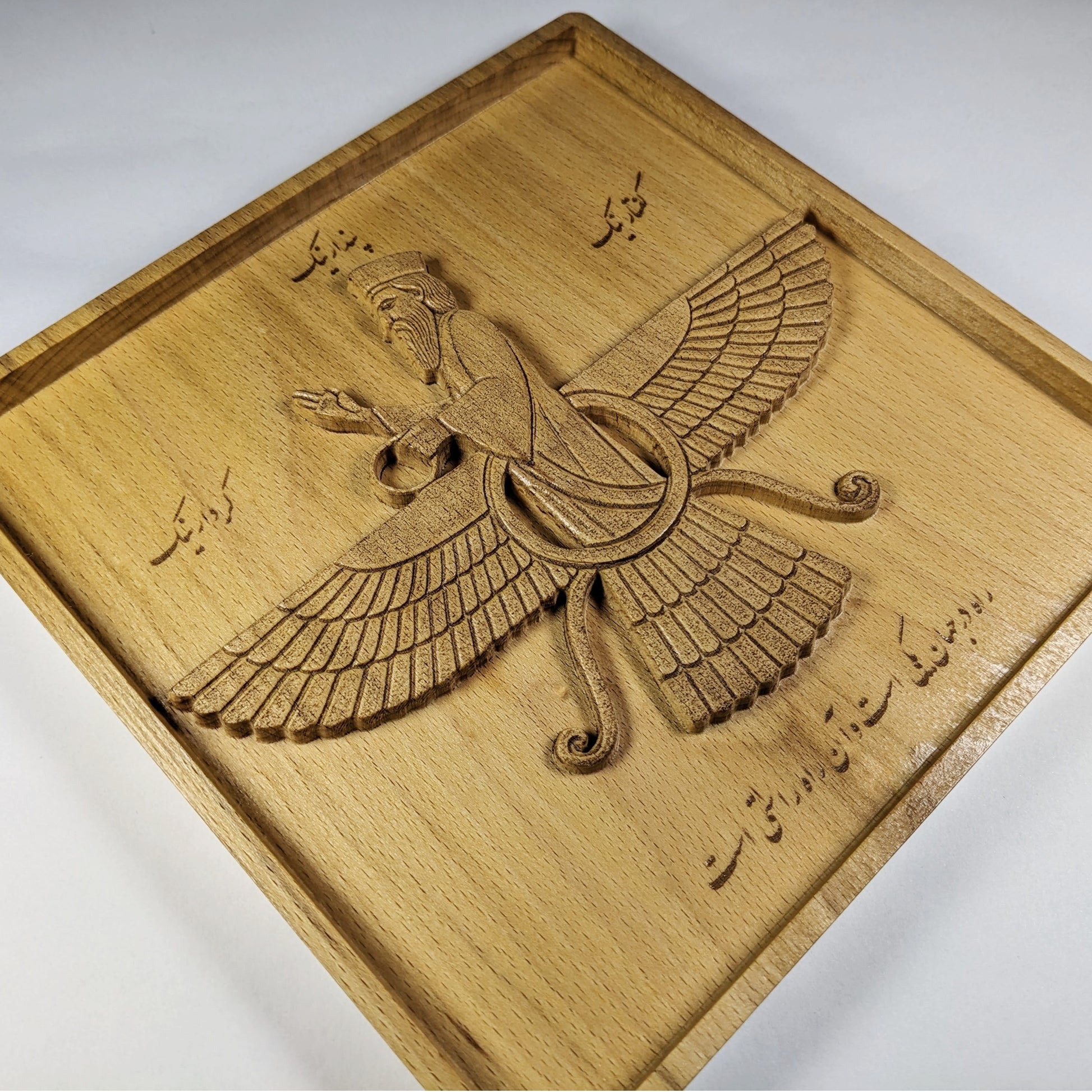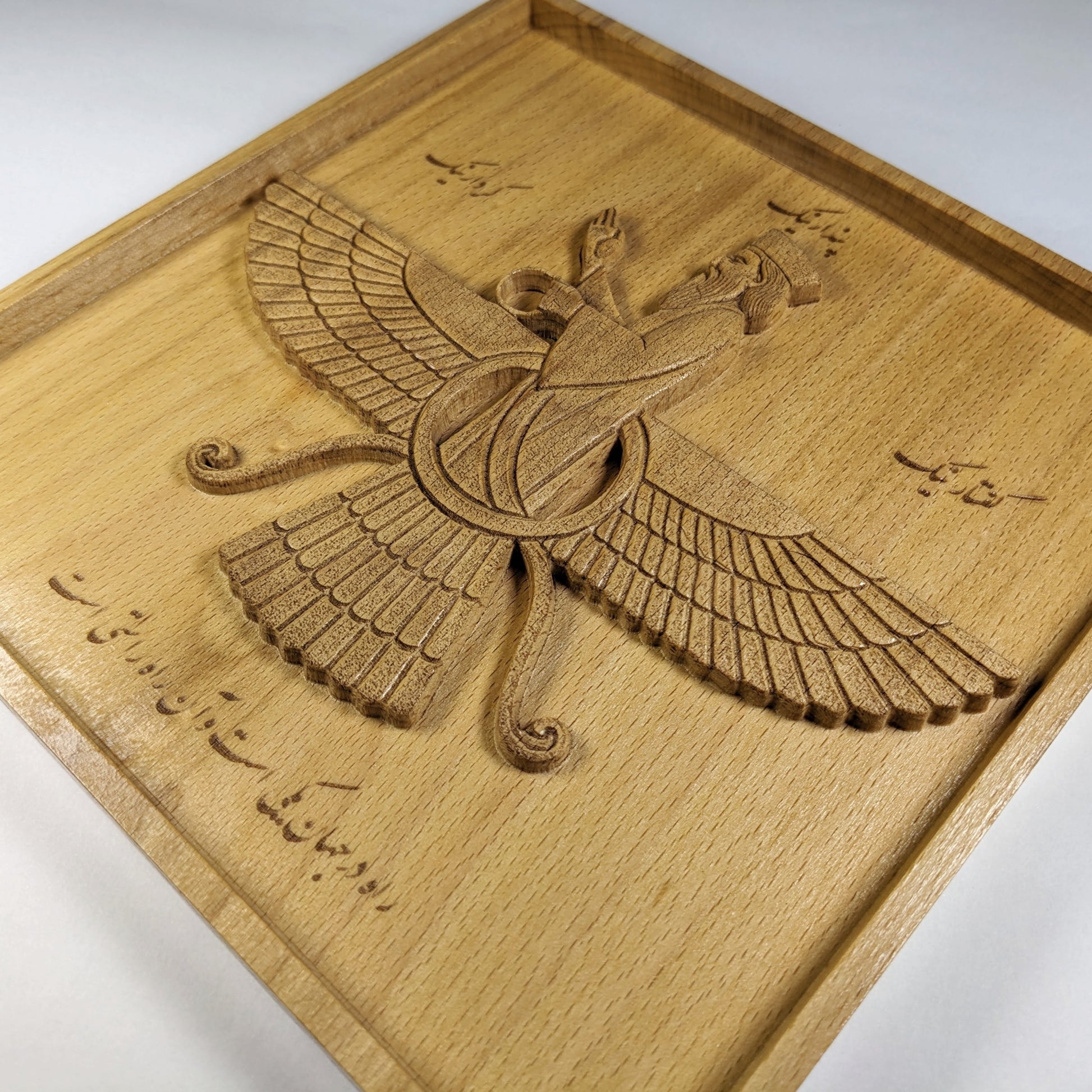 Faravahar Symbol 3D Wood Carving – Handmade Beech Wall Art – Zoroastrian Decor – Heritage Gift – Made in USA